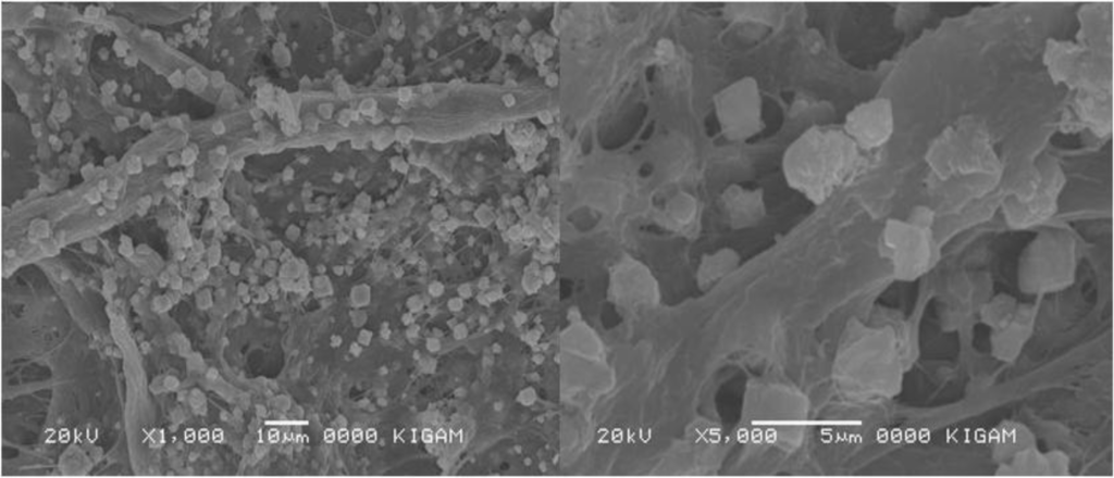 The Energy Technology Innovation (ETI) R&D Program in the Ministry of Knowledge Economy, South Korea includes a project titled “Technical Development of Calcium Carbonate Filler used in Eco-friendly Paper”, which is being performed by our research group at the Eco-PCC Lab in KIGAM. The main objectives of the project are to develop on-site carbonation process for energy efficiency improvement, to synthesize PCC through in-situ processes, and to develop effective treatment technologies for paper making process wastewater. Also, it is expected to establish an energy and cost-efficient recycling paper industry applying successful results from this project. From one ton of recycled paper, for example, approx. 4,200 kw of energy per year can be saved because the in-situ process, which is a paper making process combined with PCC synthesis, that needs less electricity for drying paper and de-watering sludge. Compared to the traditional paper making process separated from PCC synthesis (ex-situ process), the in-situ process can also decrease air and water pollution, so it can be considered as an “environment-friendly process”.