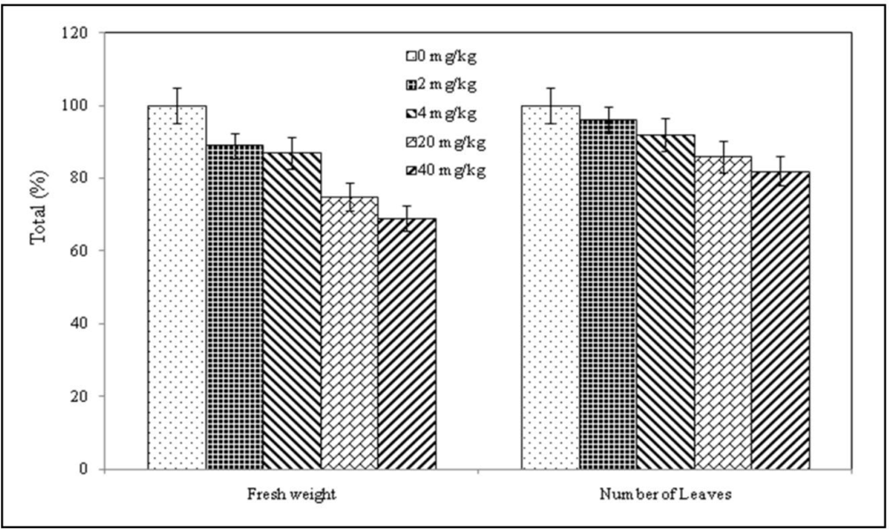 Number of leaves and fresh weight of the plants treated with 0, 2, 4, 20 and 40 mg Se per kg of substrate.