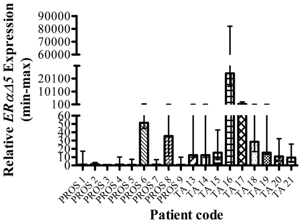 | Patient code | ERα | ERαΔ3 | ERαΔ5 | ERβ1 | ERβ2 | ERβ5 |