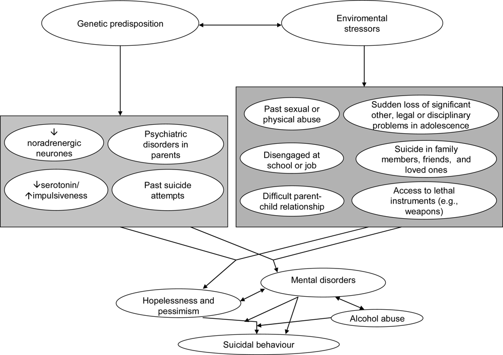 Although groups at risk can be identified, the prediction of suicide in individuals is difficult because individual risk factors account for only a small proportion of the variance in risk and lack sufficient specificity, resulting in high rates of false positives [227]. The management of people at risk of suicide is challenging because of the many causes and limited evidence base.