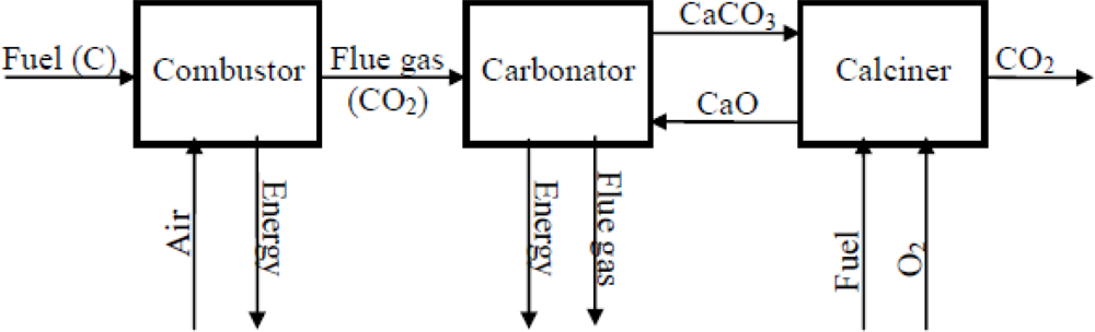 Schematic representation of CaO-based CO2 looping cycles.
