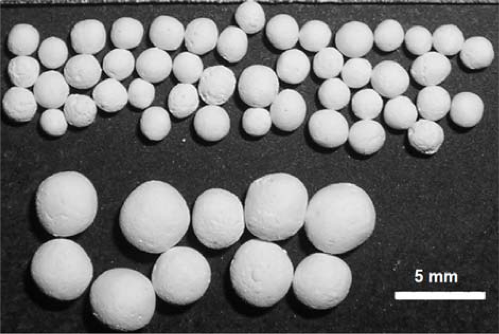 Photograph of calcium aluminate-based pellets.