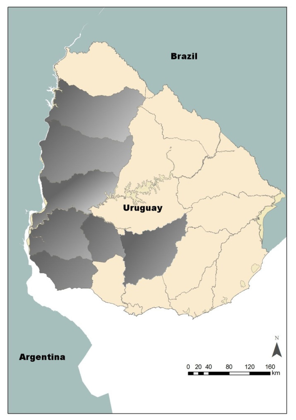 Map of Uruguay showing the sampling region (highlighted in grey).