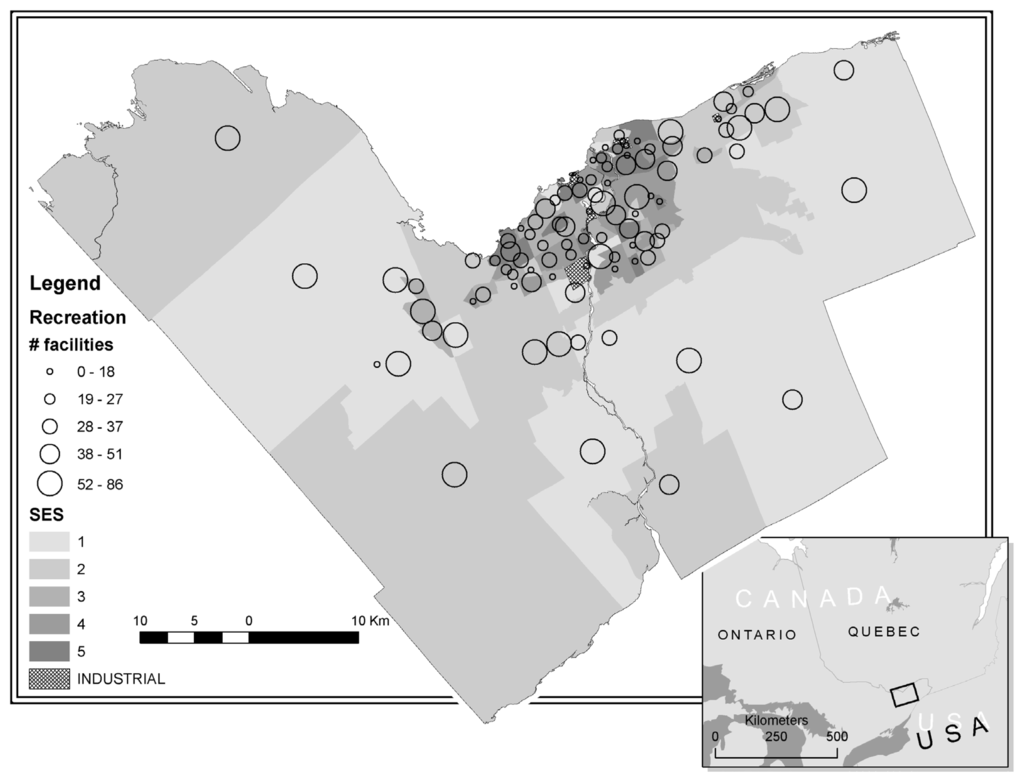 - Riva, M; Gauvin, L; Richard, L. Use of local area facilities for involvement in physical activity in Canada: Insights for developing environmental and policy interventions. Health Promot. Int 2007, 22, 227–235. [Google Scholar]