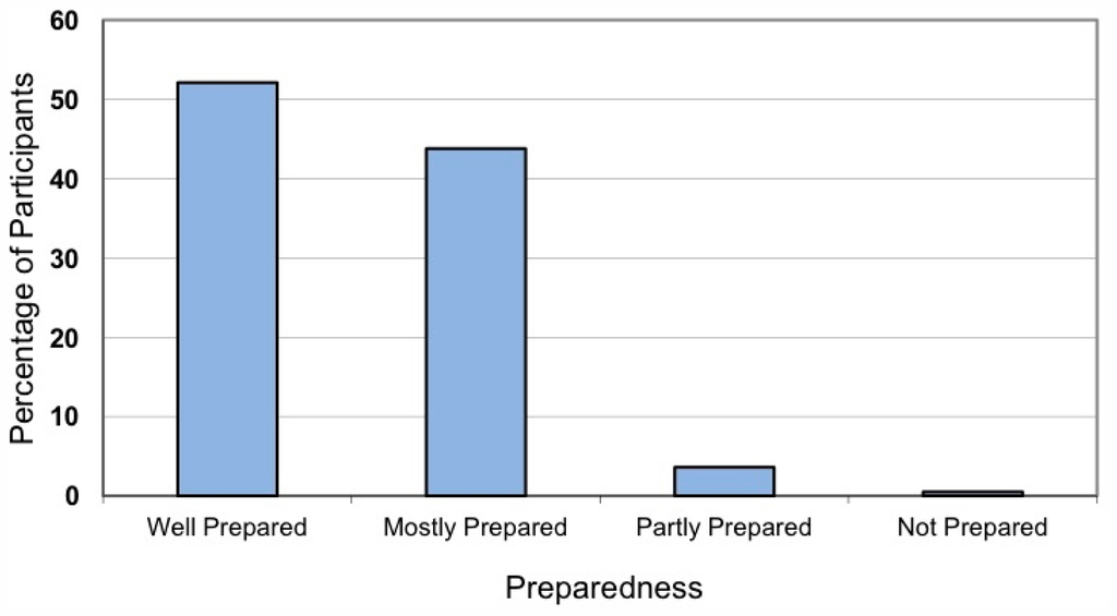 Following Connector training, 98.8% of participants agreed or strongly agreed that they “know where and how to get help now” (refer Table 3). On the evaluation form for the safeTALK component of Connector Training (n = 424), 96% of participants reported feeling well prepared or mostly prepared to “talk directly and openly to a person about their thoughts of suicide” (Figure 2). With regard to helpfulness of the training, 74.1% of respondents rated training as 5 (very helpful) on a scale from 1 (not at all helpful) to 5 (very helpful). Ratings indicated that 98.6% (n = 418) of participants intended to tell someone about the program.