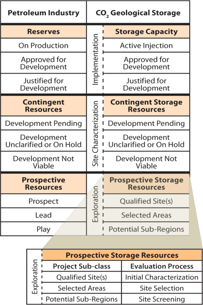 | Prospective Storage Resources | Candidate CO2 storage formations should contain enough Prospective Storage Resources beneath a robust confining zone for the volume of CO2 estimated during Project Definition and the displaced fluids. Prospective Storage Resources (and injectivity if permeability data is available) should be estimated at the sub-regional scale utilizing existing data (e.g., NATCARB, and state geological surveys) to populate basic numerical models. | ||
