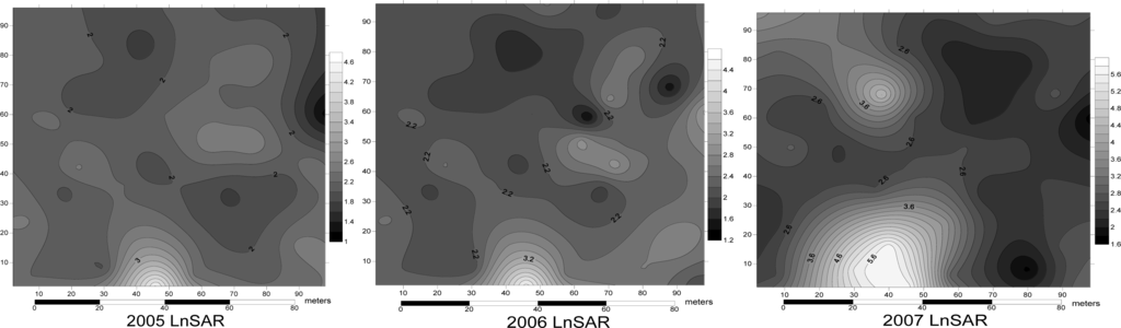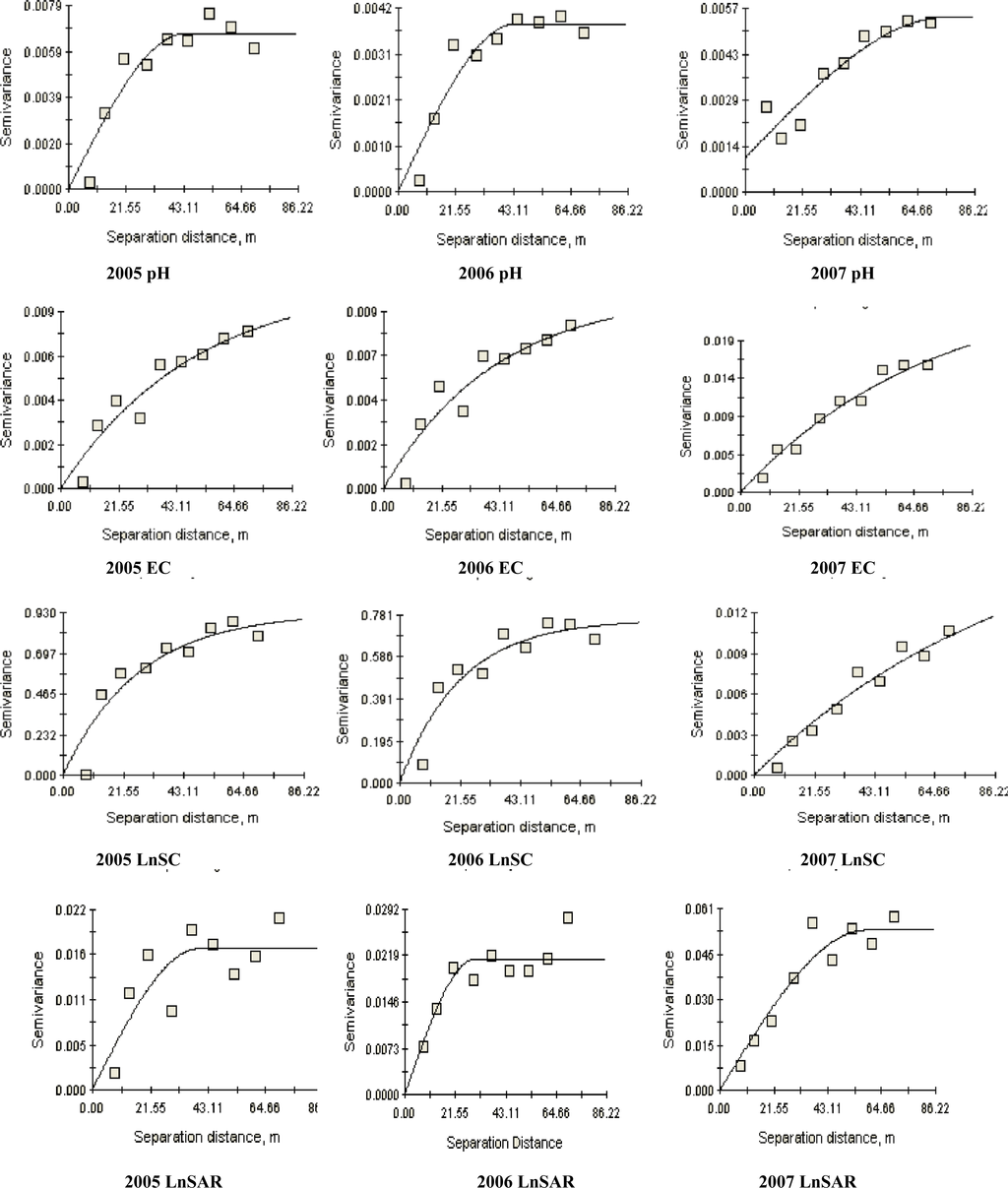 | Parameter | Year | Best-fit model | Nugget, C0 | Sill, C0+ C | Range (m) A0 | C0/(C0+ C) (%) | R2 | RSS |