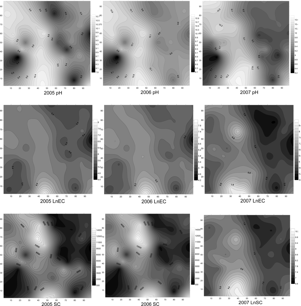 | EC (μs·cm−1) | 2005 | 82.8 | 2710 | 392 | 1.02 | 5.22 | 30.50 | LN | 0.596 |