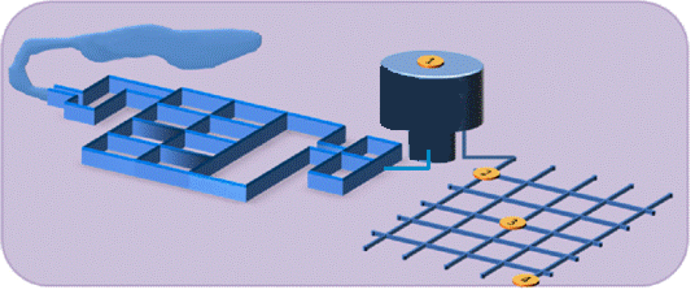 Drinking water distribution system. 1—Water treatment plant and reservoir; 2—beginning; 3—middle and 4—end of the network.