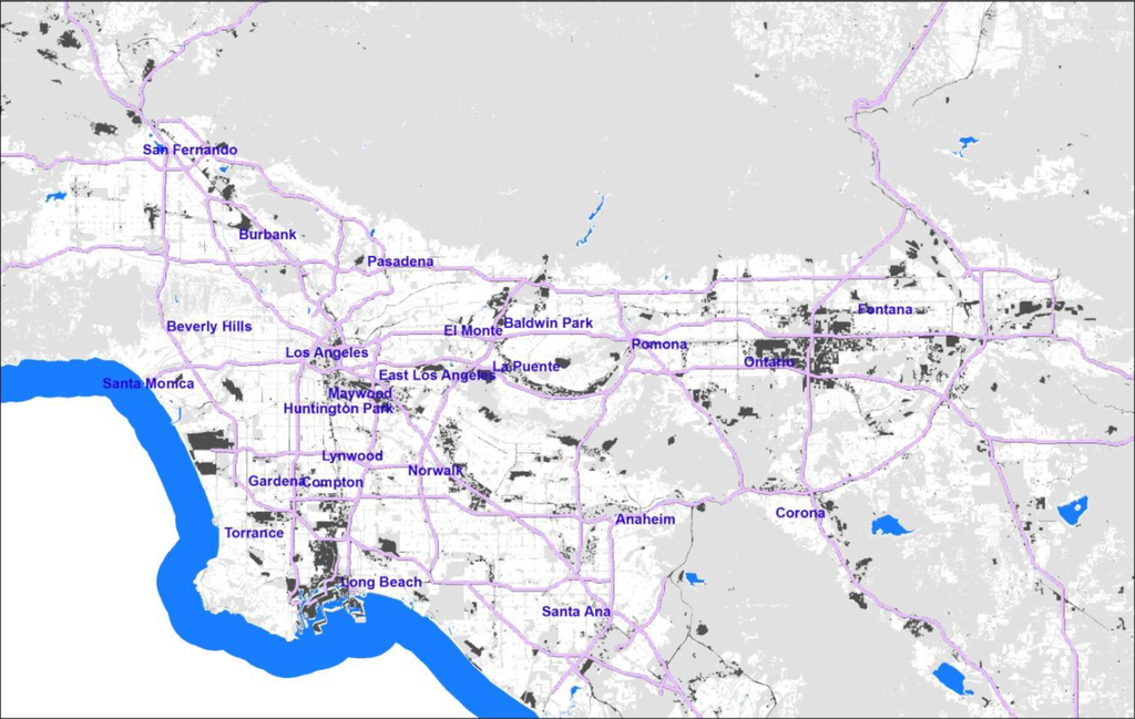 - Land Use Spatial Data Layer for the Southern California Aerial Land Use Consortium; Southern California Association of Governments (SCAG): Los Angeles, CA, USA, 2005. Available online: http://www.scag.ca.gov/mappingGIS.htm (accessed on 19 May 2006).