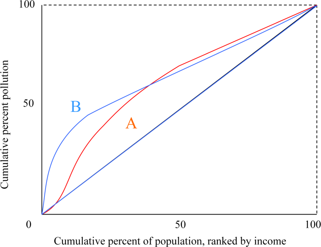 In this section, we outline how this literature has been adapted to address environmental justice questions, identifying some shortcomings and suggesting some steps forward. We begin with a set of visual ranking tools, Lorenz and concentration curves, which allow one to determine easily if one distribution of outcomes is more “equitable” than another. These tools are only applicable, however, for a small set of possible distributional comparisons.