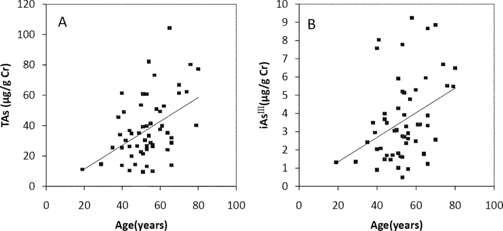 3.4. Relationship between Age and Urinary Arsenic Metabolites