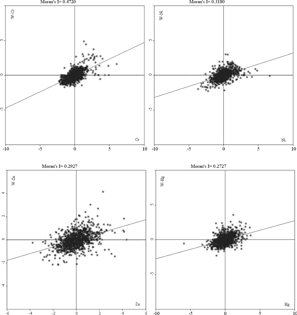| Types of spatial autocorrelation | Cr | Ni | Zn | Hg |