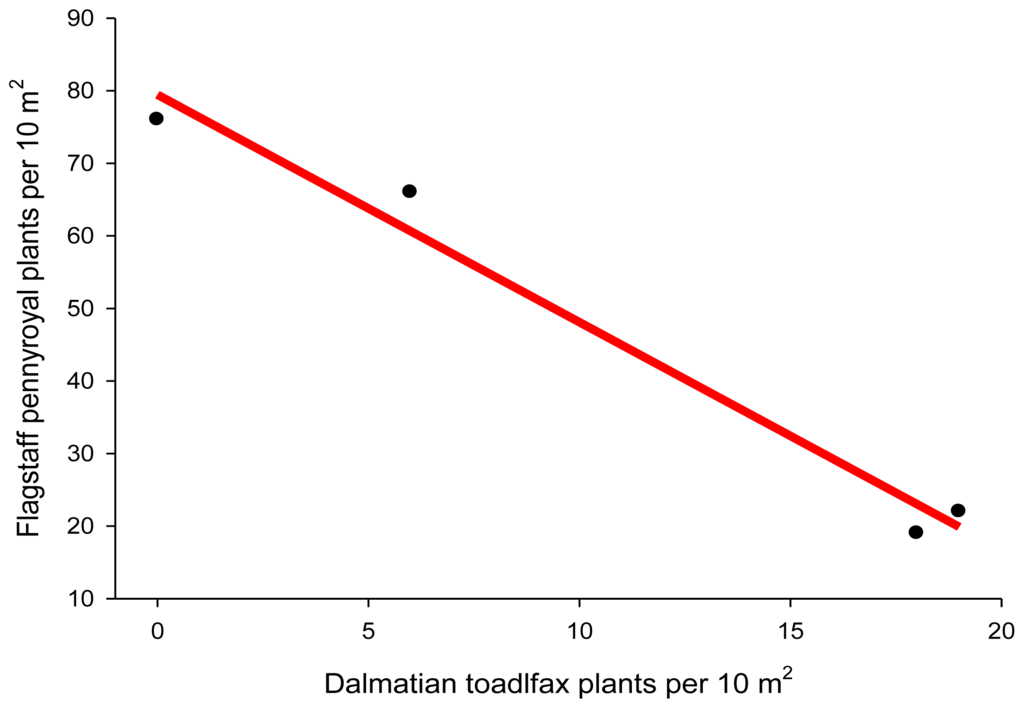 - Phillips, BG; Crisp, D. Dalmatian Toadflax, an Invasive Exotic Noxious Weed, Threatens Flagstaff Pennyroyal Community Following Prescribed Fire. Southwestern Rare and Endangered Plants: Proceedings of the Third Conference, Flagstaff, AZ, USA, 25–28 September 2000, Maschinski, J, Holter, L, Eds.; Rocky Mountain Research Station, USDA: Flagstaff, AZ, USA, 2001; pp. 200–205. [Google Scholar]