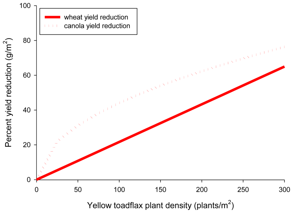 - O’Donovan, JT; McClay, AS. Influence of various densities of toadflax on yield of canola. Expert Comm. Weeds Res. Rep. (Western Canada Section) 1987, 191–192. [Google Scholar]