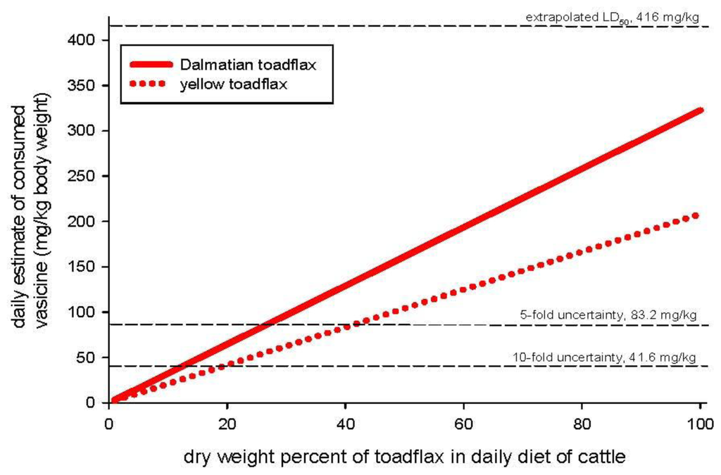 - Zilke, S; Bell, JM; Coupland, RT. Toxicity Tests of Artificial Dried Leaves and Stems of Toadflax (Linaria Vulgaris Hill). In Res. Rep. National Weed Committee (West. Sec.); Canada Department of Agriculture: Ottawa, ON, Canada, 1954; p. 107. [Google Scholar]