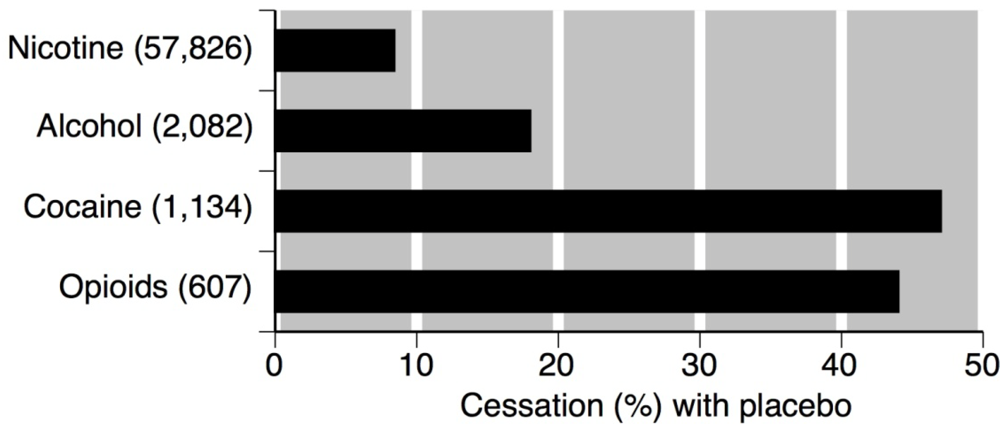 Cessation rates with placebo across different addictions (number of participants).