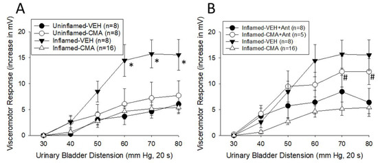 3.3. Experiment 2B: Responses to Graded Urinary Bladder Distension (UBD)