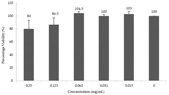 Cell Viability at various concentrations of blueberry extract. Values are presented as the mean ± SD of n = 6.