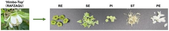 Raspberry flowers were separated into five parts, namely receptacle (RE), sepal (SE), pistil (PI), stamen (ST), and petal (PE).