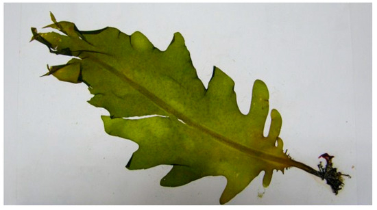 There are about 600 edible seaweed species recognized globally, with Porphyra/Pyropia sp. (Rhodophyta), Undaria pinnatifida (Figure 4), and Saccharina/Laminaria sp. (Phaeophyceae) being the main three used in Asian meals, known as the food product names “nori”, “wakame”, and “kombu” [39]. Although their contents vary greatly according to the species, location, growing/production circumstances, and harvest season, they are all capable of delivering essential macro- and micronutrients. Macronutrients are proteins, lipids, and carbohydrates that must be consumed in bigger amounts on a regular basis to provide energy. Micronutrients are vitamins, minerals, and trace elements that, although required in minute amounts, are essential for maintaining key processes [4].