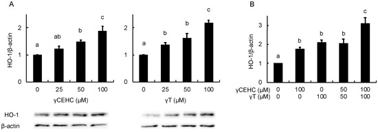 D-γT was obtained from FUJIFILM Wako Pure Chemical Corporation (Osaka, Japan). γCEHC was purchased from Cayman Chemical (Ann Arbor, MI, USA). The anti-HO-1 and anti-Nrf2 antibodies were obtained from Cell Signaling Technology (Danvers, MA, USA). Tin Protoporphyrin IX (SnPP) was obtained from R&D Systems Inc. (Minneapolis, MN, USA). All other chemicals were purchased from FUJIFILM Wako Pure Chemical Corporation (Osaka, Japan) or Nacalai Tesque Inc. (Kyoto, Japan).