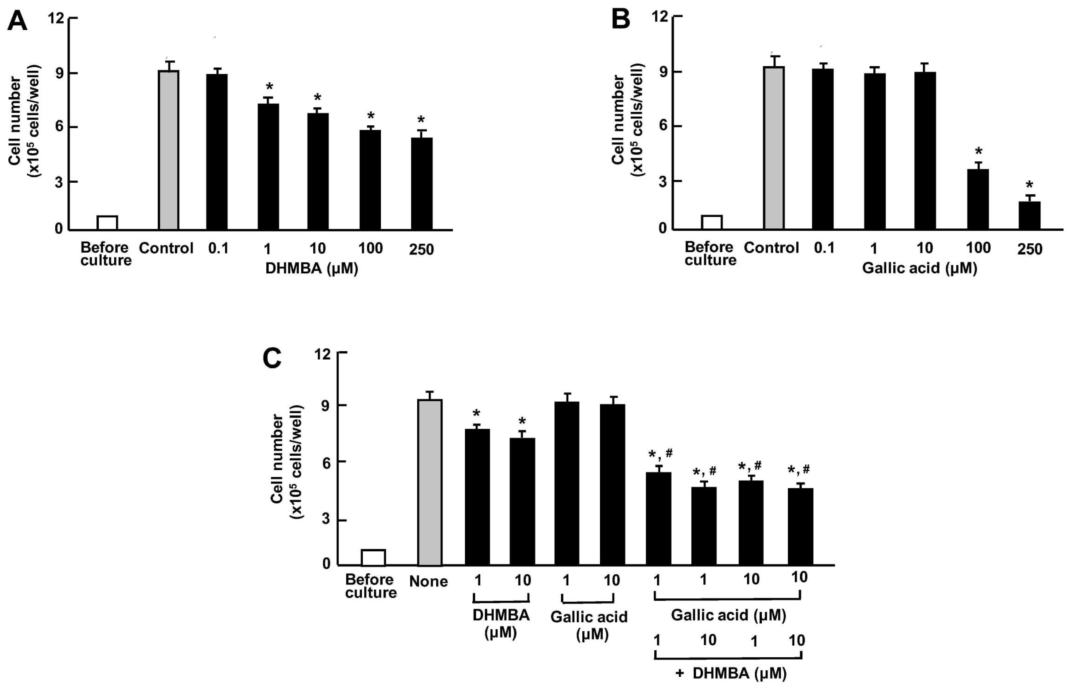 3.1. Comparative Effects of DHMBA and Gallic Acid on the Growth and Death of Mouse Macrophage RAW264.7 Cells