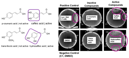 3.3. Structure Activity Relationships: Pure Compound Screen Identifies Hydroxylated Compounds as Active on the CFT073 Assay