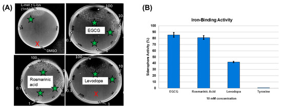 - Luscher, A.; Moynié, L.; Auguste, P.S.; Bumann, D.; Mazza, A.; Abergel, R.J.; Schalk, I.J. Plant-derived catechols are substrates of TonB-dependent transporters and sensitize Pseudomonas aeruginosa to siderophore-drug conjugates. mBio 2022, 13, e01498-22. [Google Scholar] [CrossRef] [PubMed]