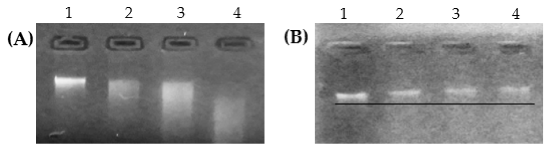 2.7. Effects of Weissellicin LM85 on Genomic DNA