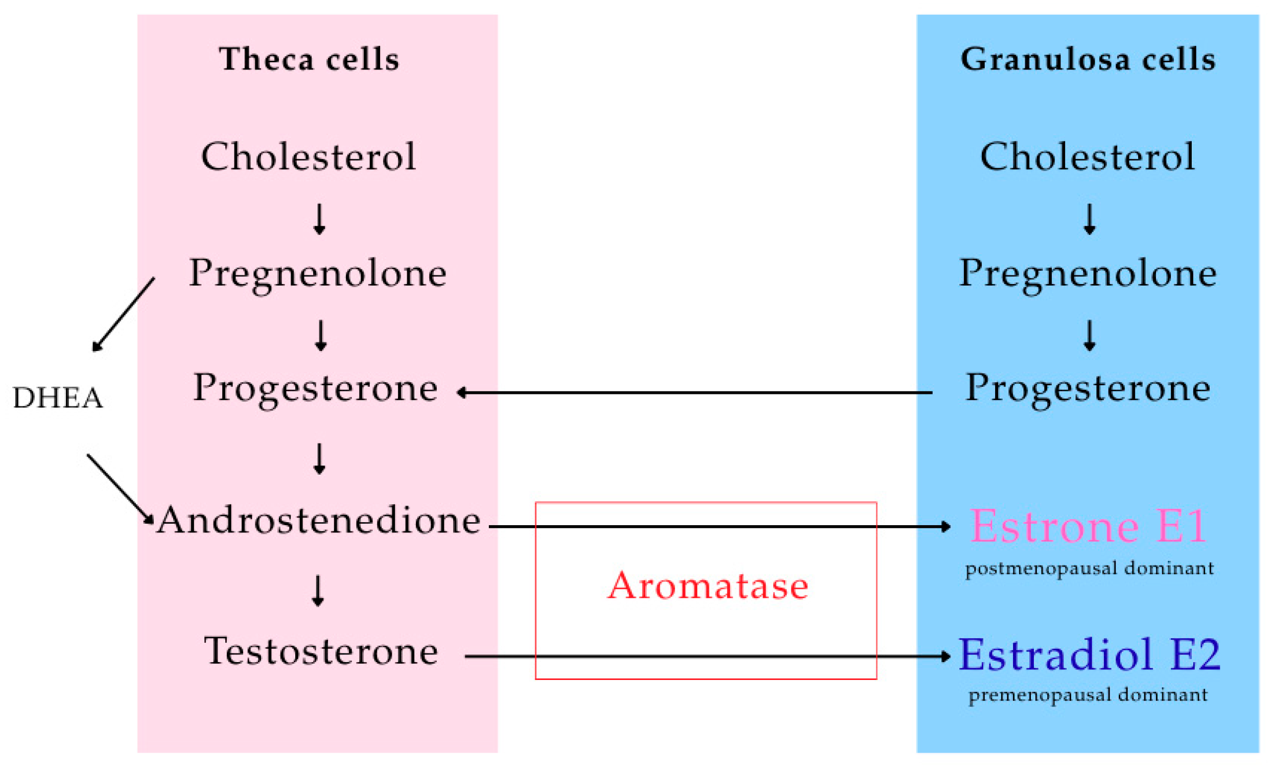 - Simpson, E.R. Sources of estrogen and their importance. J. Steroid Biochem. Mol. Biol. 2003, 86, 225–230. [Google Scholar] [CrossRef]