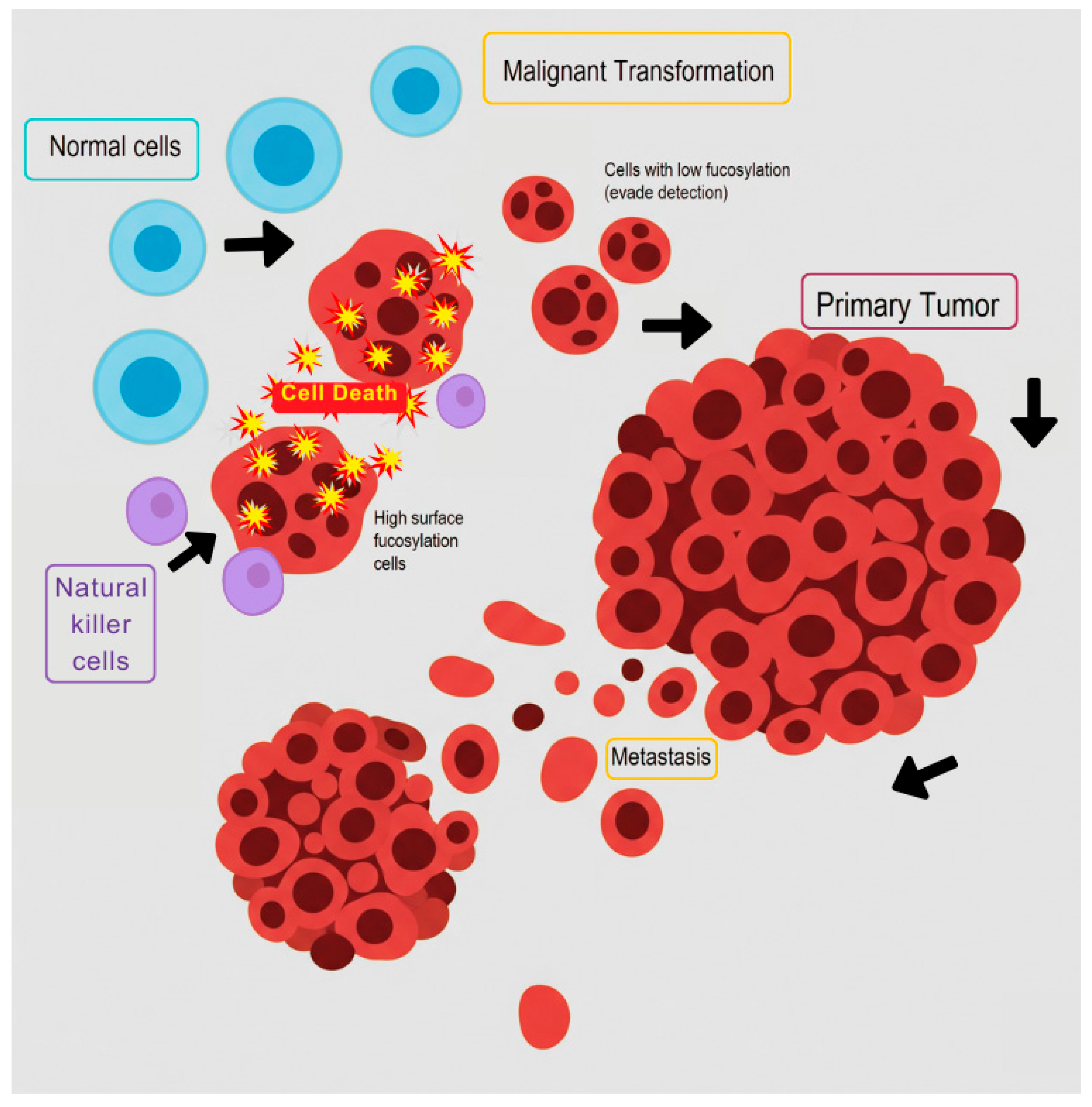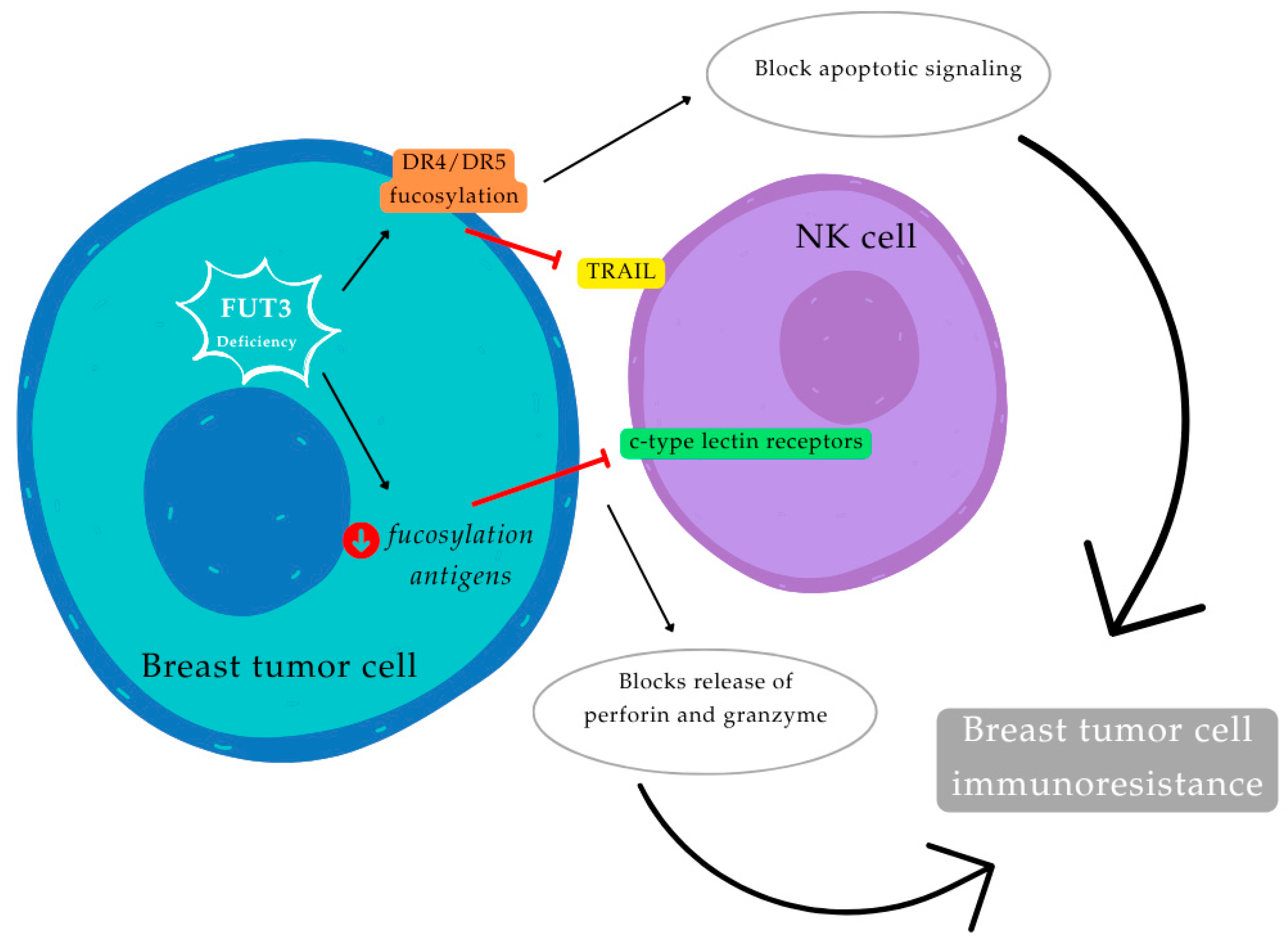| Fucosiltransferase (FUT3) | Alteration of glycosylation pattern Adhesion to components of the extracellular matrix and to endothelial cells. | The expression of sLea in breast carcinoma is related to tumor stage, and higher levels were found in metastatic tumors. | [37,38] |