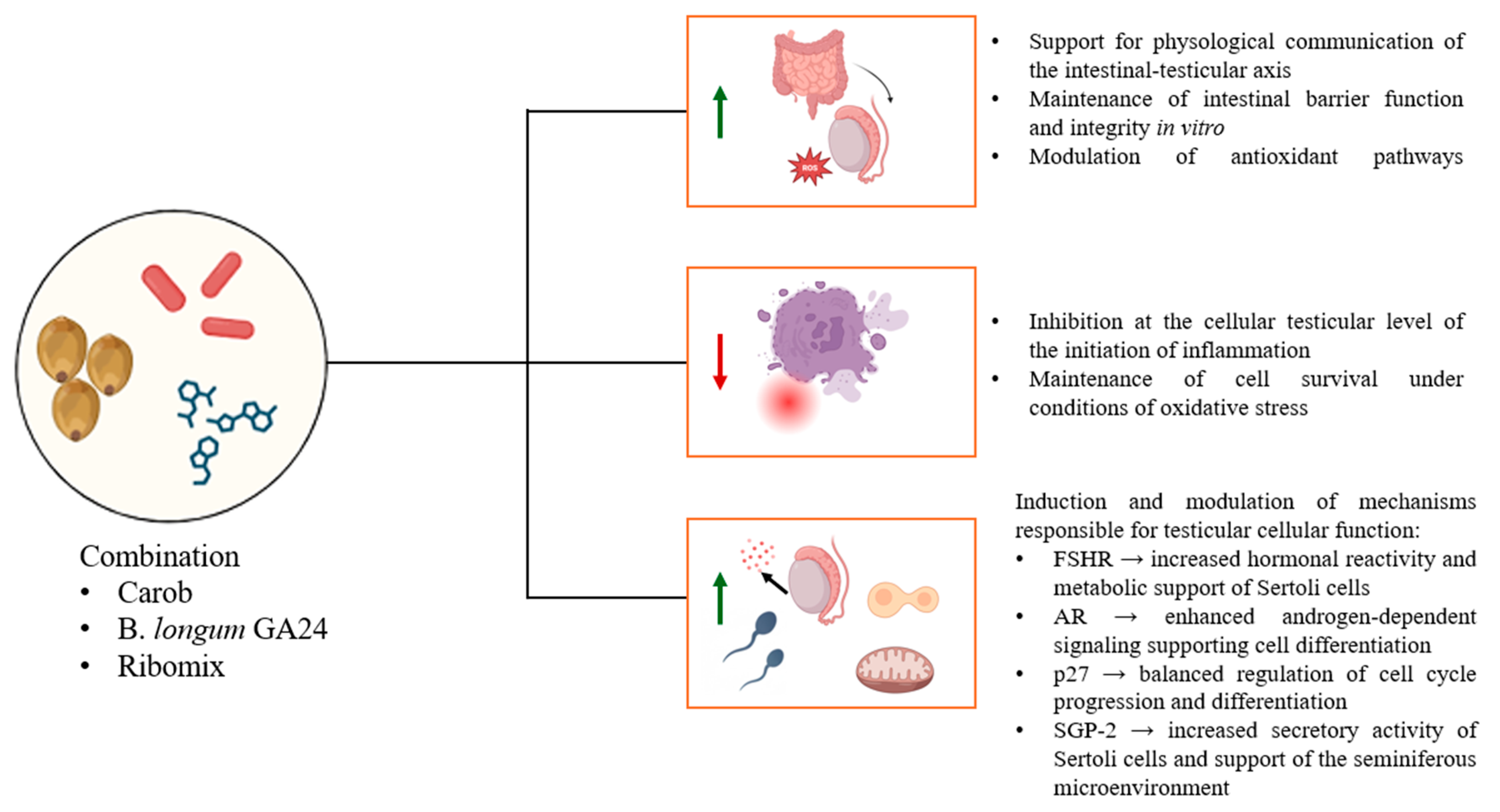 In Vitro Insights on a Gut–Testis Axis Model by a Nutraceutical Combination of Ceratonia siliqua, Ribonucleotides and Bifidobacterium longum