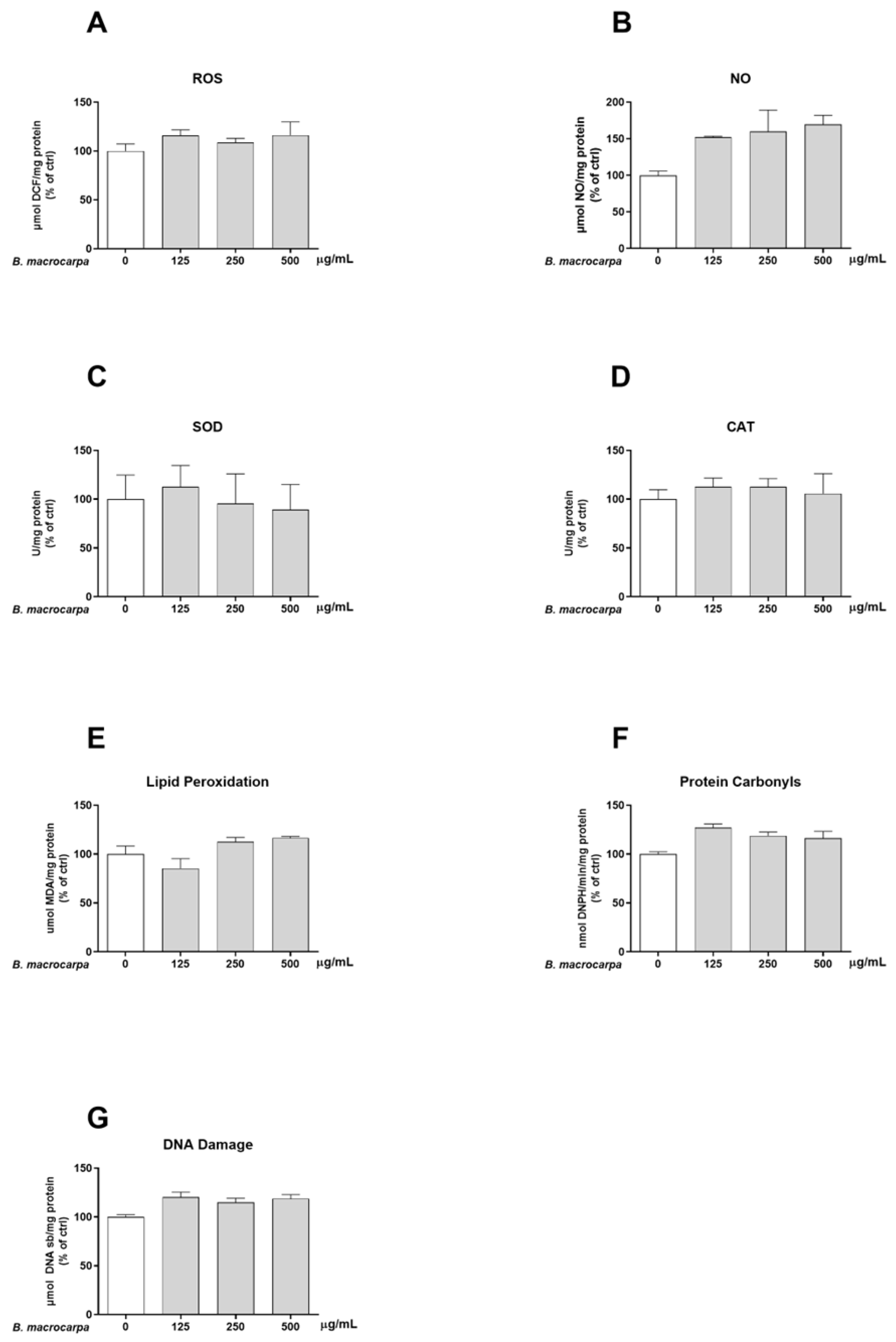 3.4. Effect of 26 h Exposure to B. macrocarpa Extract on Oxidative Stress in Zebrafish Larvae