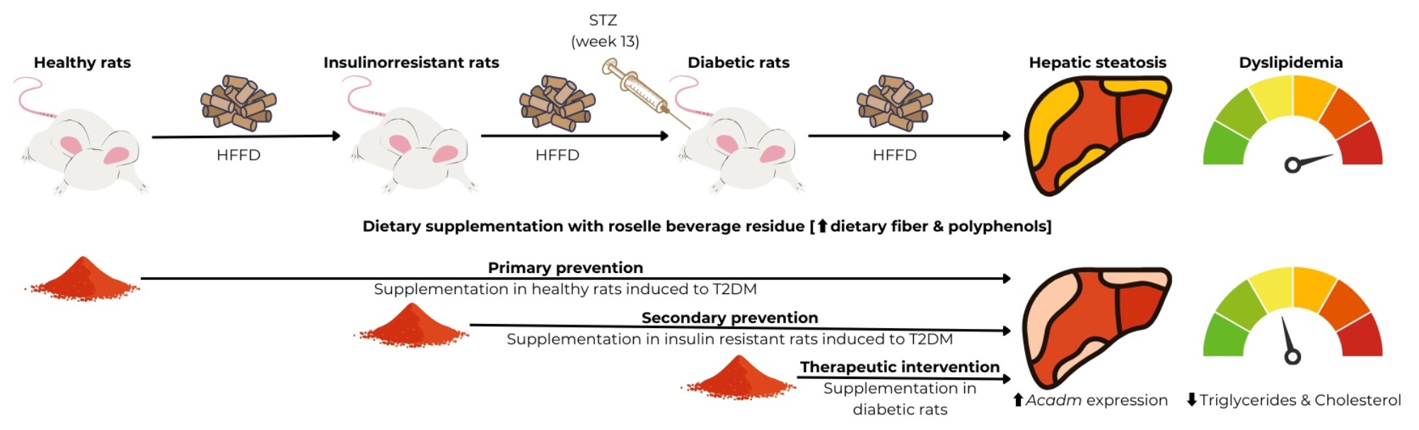 Chicago/Turabian StyleRegalado-Rentería, Evelyn, Jesús E. Serna-Tenorio, David G. García-Gutiérrez, Rosalía Reynoso-Camacho, Miriam A. Anaya-Loyola, and Iza F. Pérez-Ramírez. 2026. "Dietary Intervention with Hibiscus sabdariffa L. Beverage Residue Attenuates Dyslipidemia and Hepatic Steatosis in Late-Stage Type 2 Diabetic Rats" Nutraceuticals 6, no. 2: 23. https://doi.org/10.3390/nutraceuticals6020023