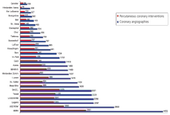 Background: Since 1987, a nationwide annual survey of percutaneous cardiac interventions is performed in Switzerland, which allows recognition of contemporary trends and comparison with other countries. Methods: Based on a standardised questionnaire, all adult percutaneous cardiac intervention centres in Switzerland were [...] Read more.
