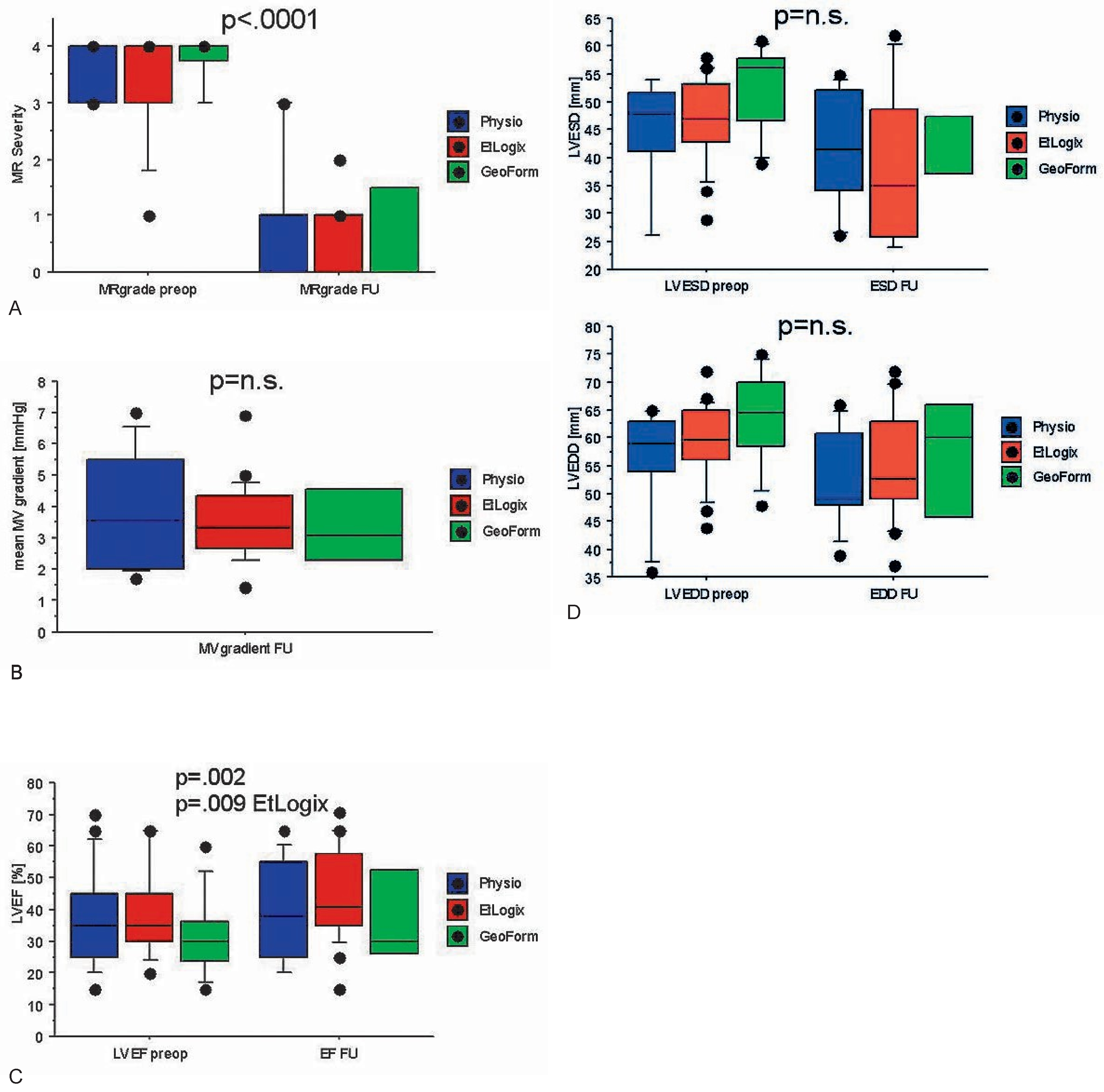 - Braun, J.; Bax, J.J.; Versteegh, M.I.; Voigt, P.G.; Holman, E.R.; Klautz, R.J.; et al. Preoperative left ventricular dimensions predict reverse remodeling following restrictive mitral annuloplasty in ischemic mitral regurgitation. Eur J Cardiothorac Surg 2005, 27, 847–853. [Google Scholar] [CrossRef] [PubMed]