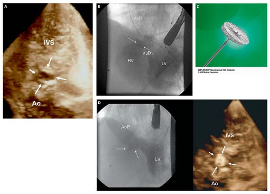- Carminati, M.; et al. Transcatheter closure of congenital ventricular septal defect with Amplatzer septal occluders. Am J Cardiol. 2005, 96(12a), 52–58L. [Google Scholar] [CrossRef] [PubMed]