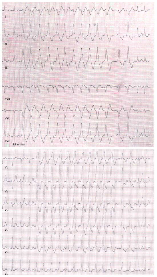- Brugada, P.; Brugada, J.; Mont, L.; Smeets, J.; Andries, E.W. A new approach to the differential diagnosis of a regular tachycardia with a wide QRS complex. Circulation. 1991, 83, 1649–1659. [Google Scholar] [CrossRef] [PubMed]
