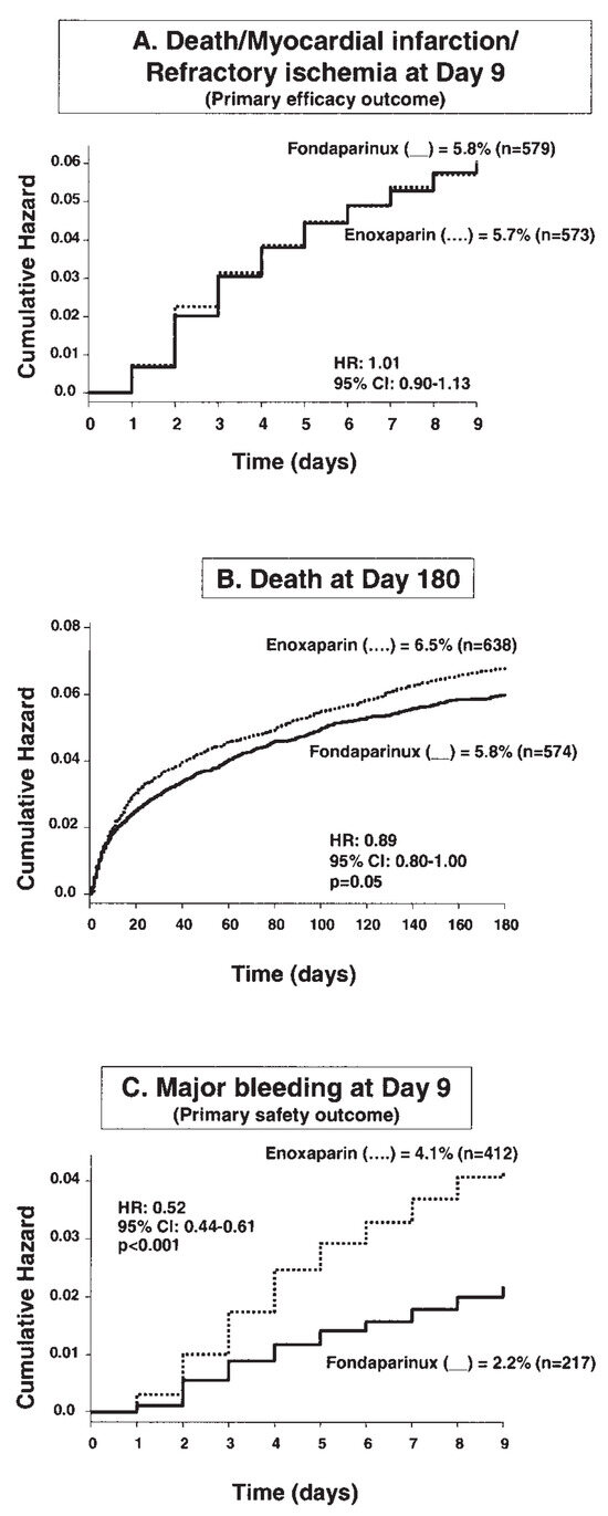 Fondaparinux (Arixtra®) is a synthetic selective factor Xa inhibitor. On the grounds of its favorable benefit-risk ratio, fondaparinux is approved for the prevention and treatment of venous thromboembolism. Two large trials in about 32000 patients recently evaluated fondaparinux in the treatment of non-ST elevation acute coronary syndromes and ST elevation acute myocardial infarction. Fondaparinux was compared with enoxaparin or usual care, depending on the setting. A single once-daily 2.5 mg subcutaneous dose of fondaparinux was used in both studies. After a brief presentation of the drug, this review presents the results obtained in these trials with fondaparinux and compares them with those obtained with other anticoagulants. Overall, it appears that fondaparinux at the single oncedaily dose of 2.5 mg represents a valuable new alternative for the treatment of patients with acute coronary syndromes. However, fondaparinux cannot be used as stand-alone anticoagulant in the setting of PCI, where an additional of unfractionated heparin is needed to eliminate the risk of catheter thrombus. Full article
