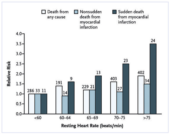 5. Mensink, G.B.M.; Hoffmeister, H. The relationship between resting heart rate and all-cause, cardiovascular and cancer mortality. Eur Heart J. 1997, 18, 1404–1410. [Google Scholar] [CrossRef]