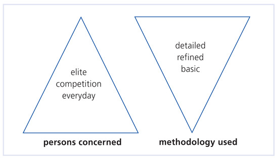 The screening philosophy should also take into account two aspects: the number of persons concerned and the methodology used. Their relative connection is illustrated in Figure 2. Methods can be kept simple when everyday physical activities in large populations are concerned but should to be more refined in professional top-elite athletes exposed to extreme forms of physical and emotional stress. In these cases a selective screening should preferably be performed at the start of a career before financial stakes may be compromised by medical recommendations or disqualification.