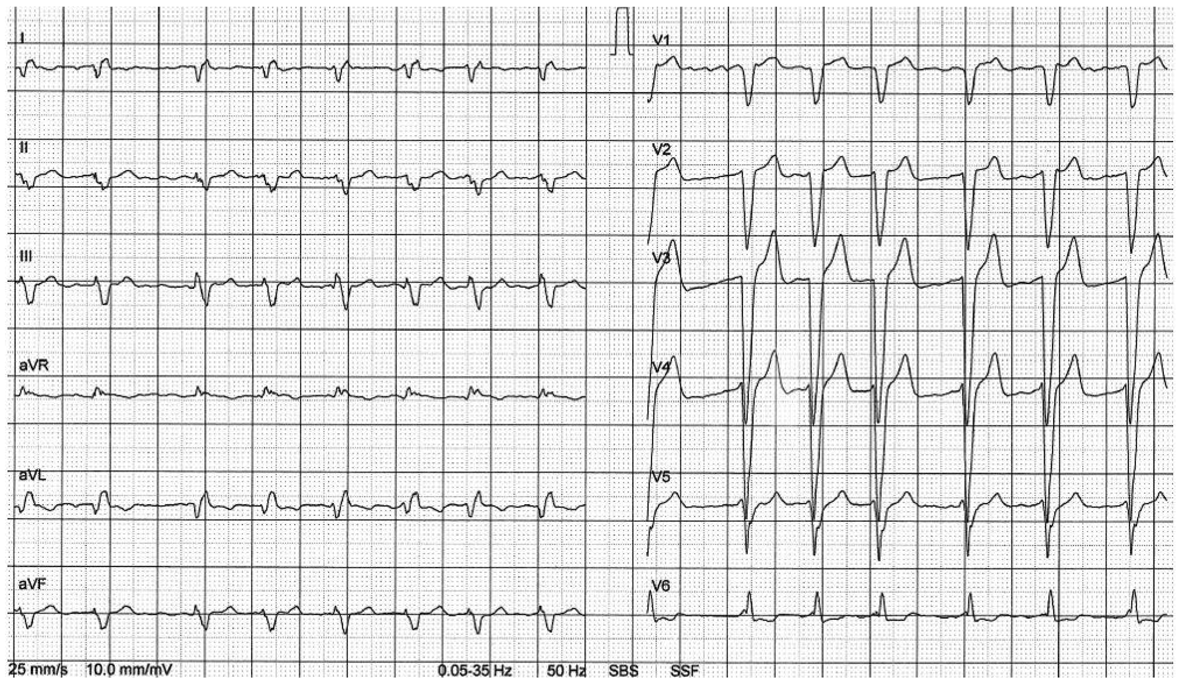 - Grimm, W.; Hoffmann, J.; Menz, V.; Schmidt, C.; Müller, H.H.; Maisch, B. Significance of accelerated idioventricular rhythm in idiopathic dilated cardiomyopathy. Am J Cardiol. 2000, 85, 899–904, A10. [Google Scholar] [CrossRef] [PubMed]