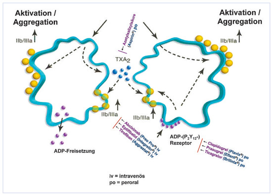 Platelet inhibition in coronary artery disease. Acetylsalicylic acid has been used for over 100 years but its potential to inhibit platelets has only been taken advantage of for about 30 years. For about 10 years the thienopyridines (initially ticlopidine and then clopidogrel) have been used as alternatives or complements (in particular in the context of coronary artery stents). Thienopyridines block the ADP receptor of the platelet which stimulates the GP IIb/IIIa receptors (subreceptor P2Y12) to appear at the platelet surface and to permanently ligate to a fibrinogen molecule. Each fibrinogen molecule can attach to 2 GP IIb/IIIa receptors. If they belong to two individual platelets, the two are aggregated irreversibly. Recently a second thienopyridine (prasugrel) has come to market. It is a prodrug like clopidogrel but activated faster and more reliably. In the examined doses it has proved to be more efficacious but also more bleed prone than clopidogrel. Soon to come is another oral ADP antagonist (ticagrelor) which is ingested in the active form and binds to the receptor reversibly. This entails that it be given twice a day. Clinical results so far show enhanced efficacy compared with clopidogrel without a significant increase of bleeding risk. Future clinical use will show whether we will continue to use all three modern platelet inhibitiors in addition to acetylsalicylic acid, narrow it down to one or two of them, or perhaps drop acetylsalicylic acid. The quest to find an oral direct inhibitor of the GP IIb/IIIa receptor goes on as does the search for other indirect platelet inhibitors acting for instance on the thrombin receptor, the thromboxane A2 receptor (also the target of acetylsalicylic acid), the epinephrine receptor, the serotonin receptor, or the collagen receptors. Full article