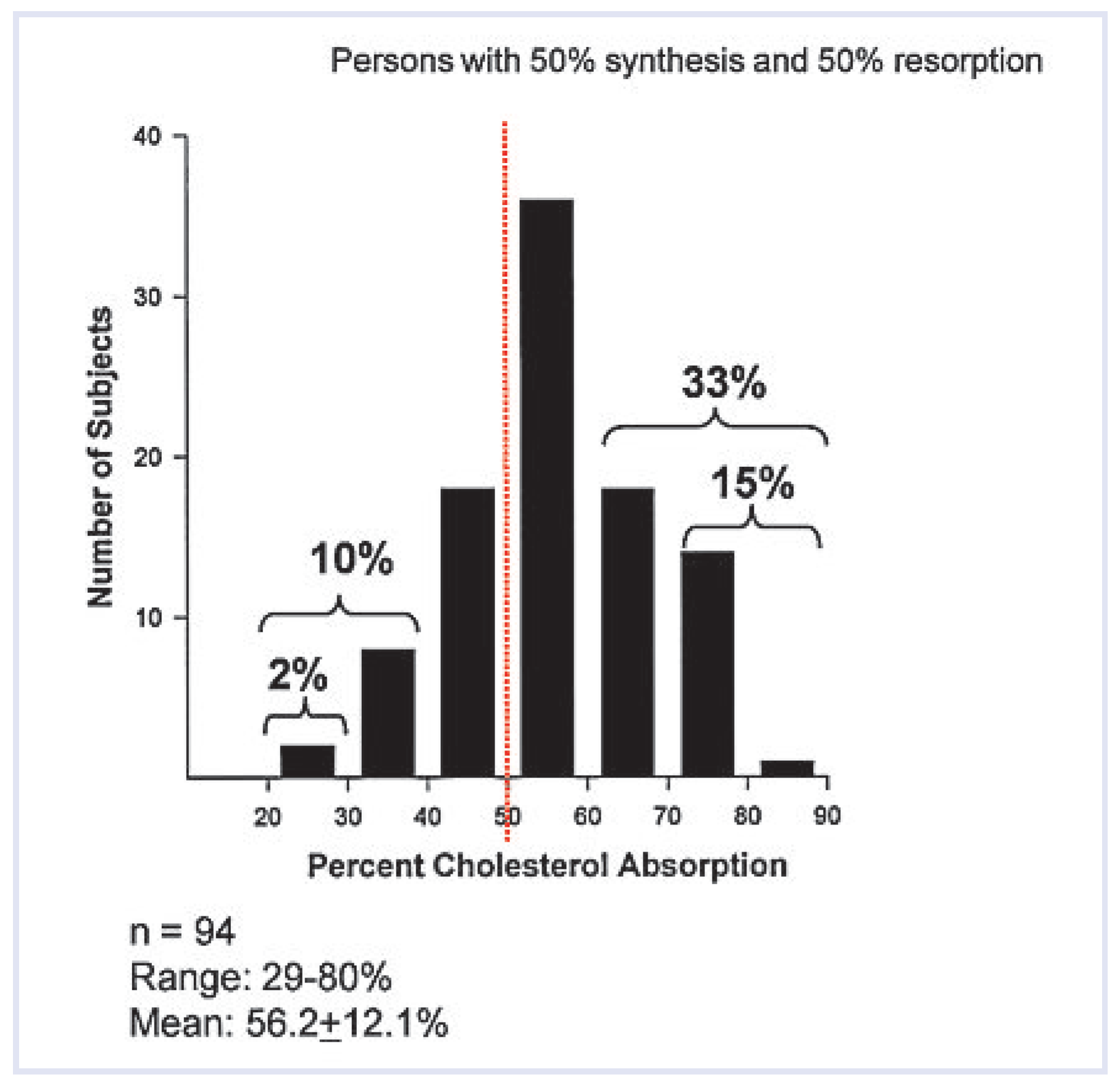 Individual variability exists with regard to the proportion of cholesterol absorption versus cholesterol synthesis. Some individuals are avid “absorbers” whereas others are “synthesisers” (