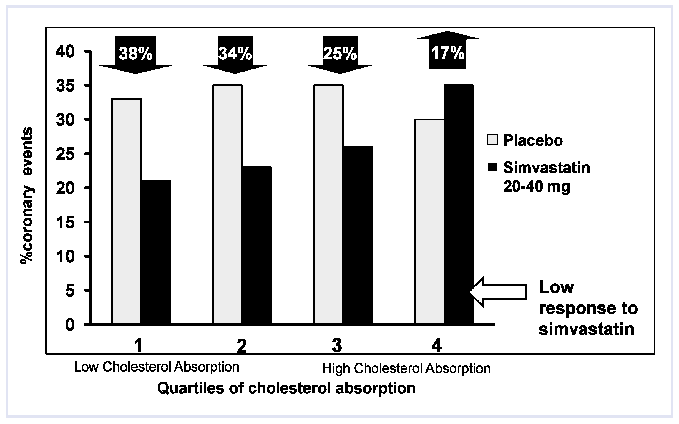 The variation in cholesterol absorption also transfers into clinical outcome. In the 4S study, high cholesterol absorbers treated with simvastatin did not show an improved clinical outcome (