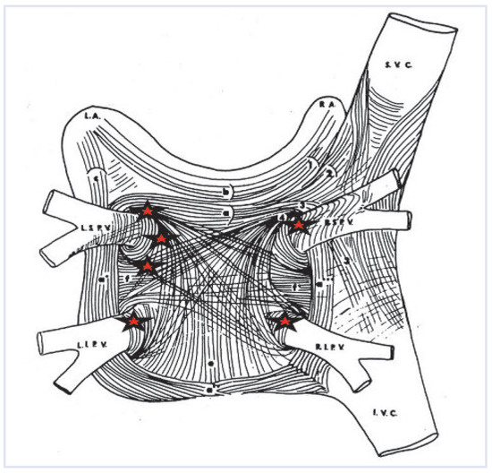 - Nathan, H.; Eliakim, M. The junction between the left atrium and the pulmonary veins. An anatomic study of human hearts. Circulation 1966, 34, 412–422. [Google Scholar] [CrossRef] [PubMed]