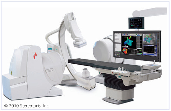 Nun sind zwei neuartige Systeme verfügbar geworden, welche eine ferngesteuerte Kathetermanipulation erlauben: Niobe (Stereotaxis, Inc., St. Louis, MO, USA) und Sensei (Hansen Medical, Inc., Mountain View, CA, USA).