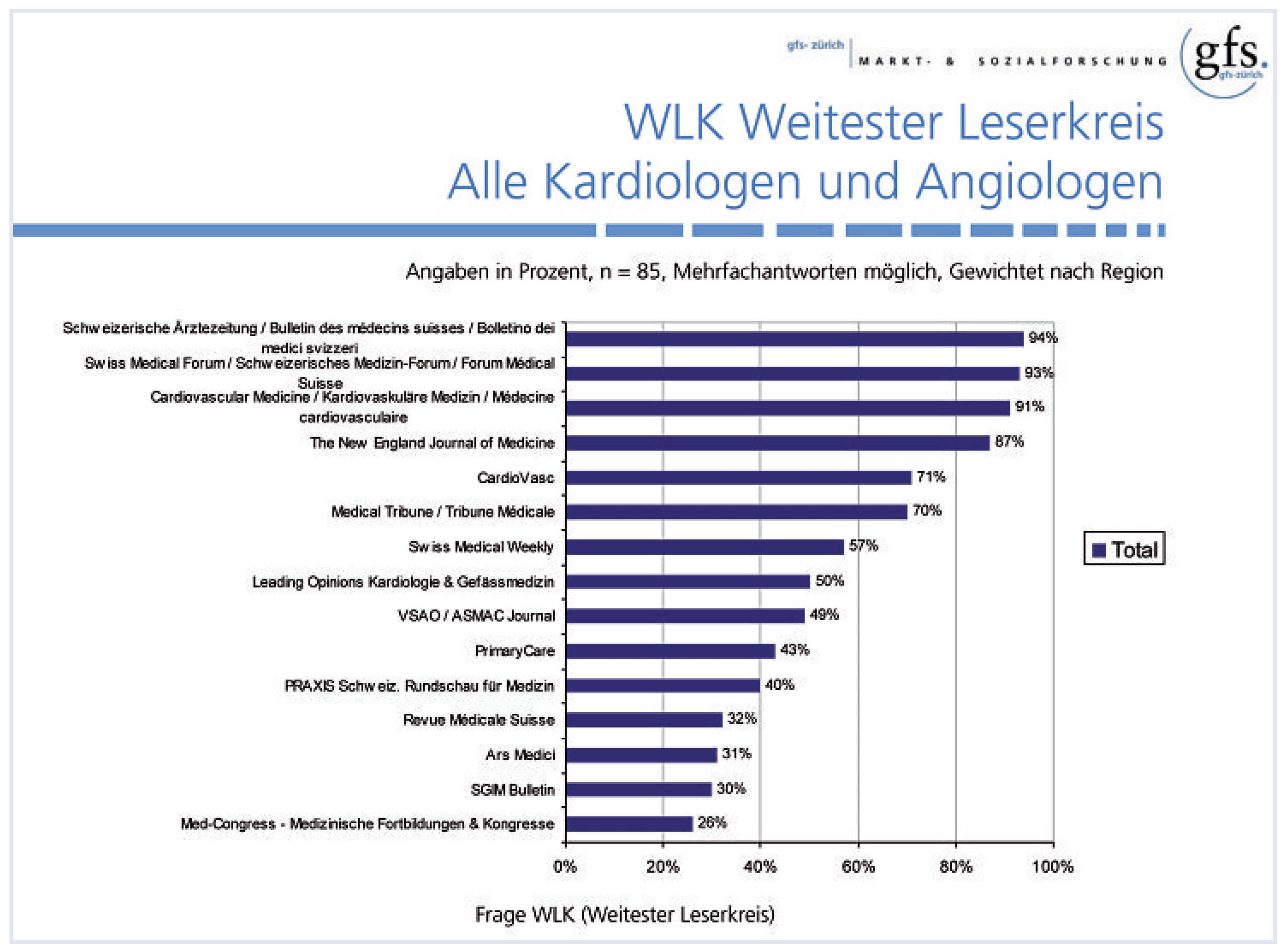 Figure 1. Results of the survey among Swiss cardiologists and angiologists about their reading habits: “Weitester Leserkreis” (total audience).