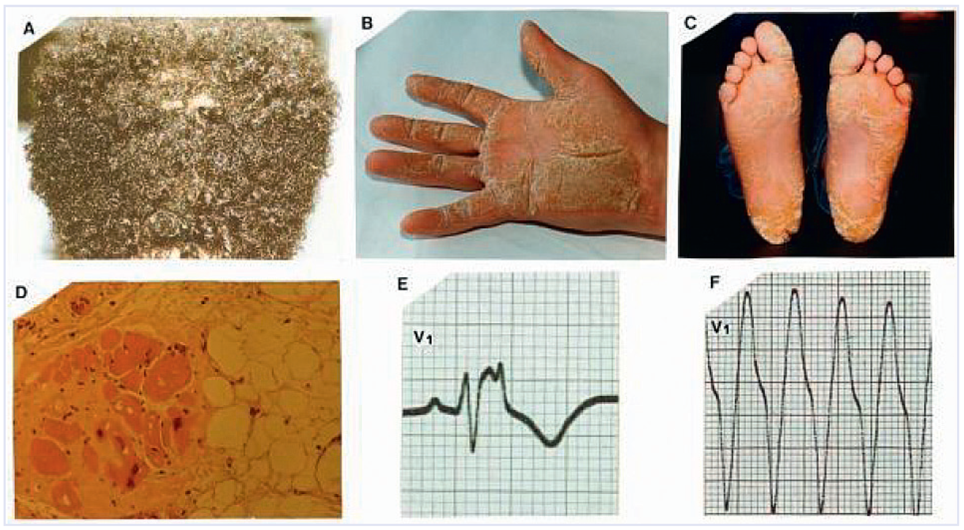 - Protonotarios, N.; Tsatsopoulou, A. Naxos disease: Cardiocutaneous syndrome due to cell adhesion defect. Orphanet J Rare Dis. 2006, 1, 4. [Google Scholar] [CrossRef]